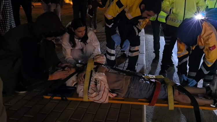 Yaşanan kazada motosiklet sürücüsü ve arkadaşı yaralanırken, olay yerine gelen anne oğlunu görünce gözyaşlarını tutamadı.