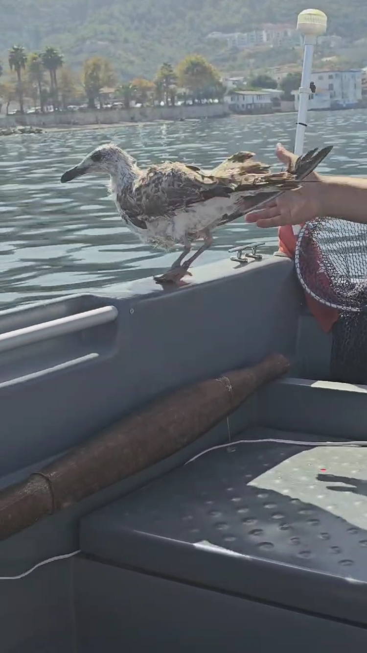 Hemen denizden alınan martı, misinadan kurtarılarak doğal yaşamına bırakıldı.