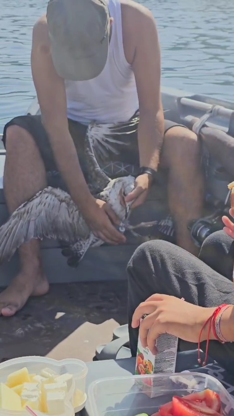 Tekne ile martının yanına giden vatandaşlar, misinaya dolandığını ve ölmek üzere olduğunu gördü.