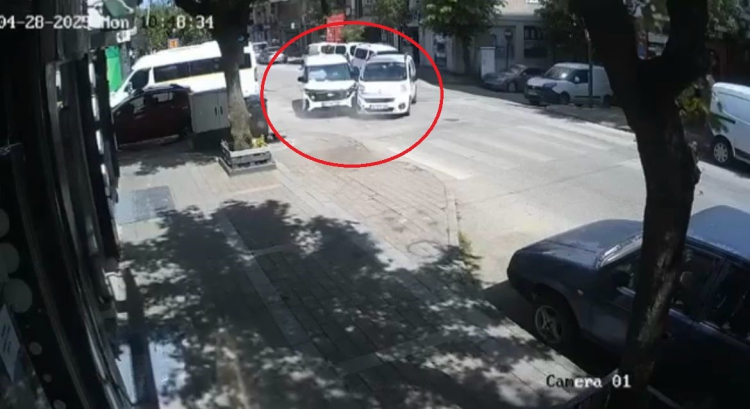 Tali yoldan ana yola dikkatsiz çıkan araç, ana yolda seyir halinde olan başka bir araca çarptı. Yaşanan kazada sürücüler hafif yaralandı. Kaza anı ise saniye saniye güvenlik kamerasına yansıdı.