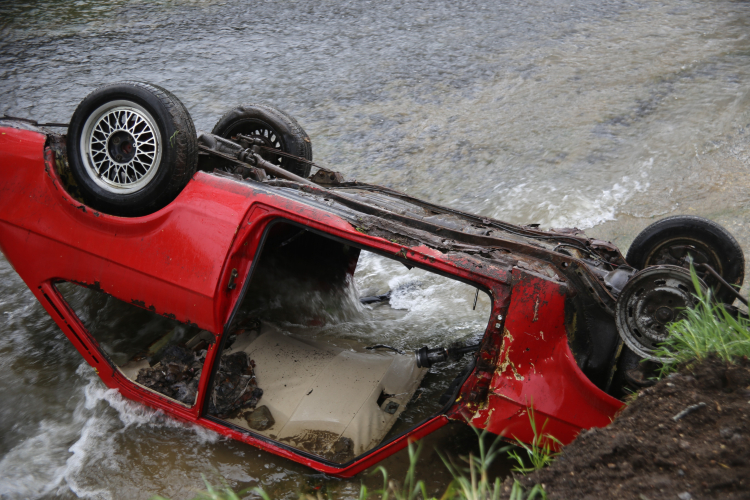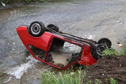 Otomobil, Gece kimliği Belirsiz kişiler Tarafından dereye İtildi