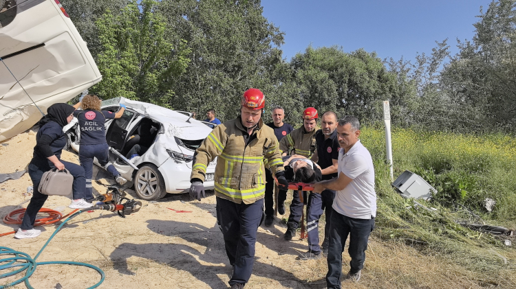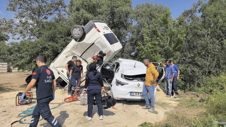 Otomobil ile çarpışan minibüs ters döndü, 2'si ağır 3 kişi yaralandı