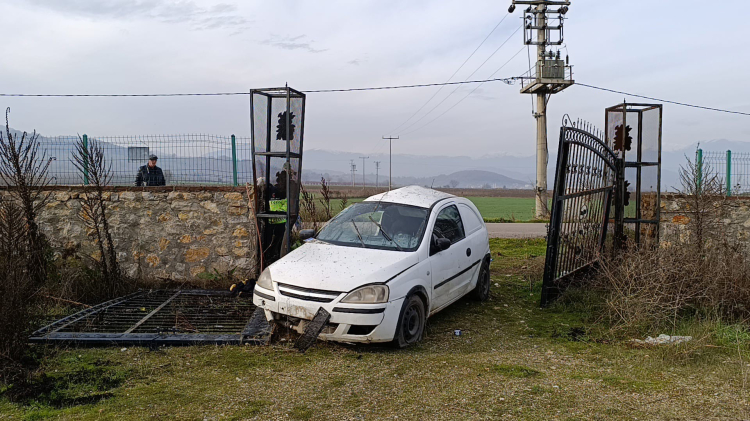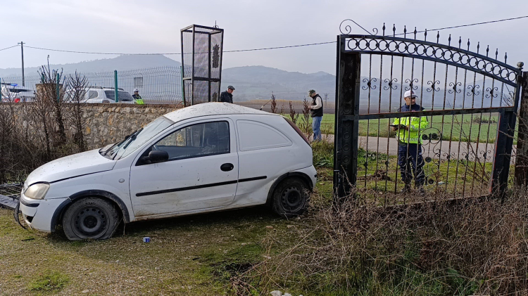 Bursa'nın İnegöl ilçesinde meydana gelen kazada bir otomobil, evin bahçe kapısına çarptı.
