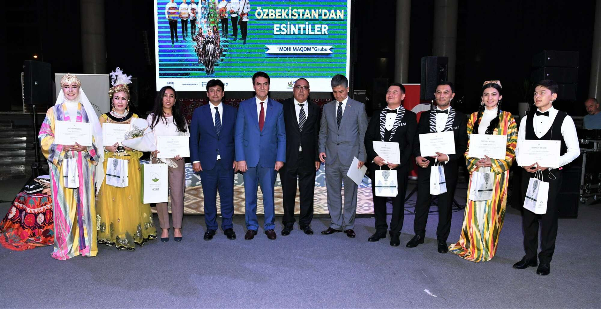 ‘Özbekistan’dan Esintiler’ gecesine; Osmangazi Belediye Başkanı Mustafa Dündar’ın yanı sıra, Özbekistan İstanbul Başkonsolosu AmirsaidAgzamxodjaev, Bursa Büyükşehir Belediye Başkanvekili Gökhan Dinçer, Karacabey Belediye Başkanı Ali Özkan, Yenişehir Belediye Başkanı Davut Aydın, Gürsu Belediye Başkanı Mustafa Işık, İL Kültür ve Turizm Müdürü Kamil Özer, Özbekistan vatandaşları ve Bursalılar katıldı. Başkan Dündar, gecede gösteri yapan ve katkısı bulunan Özbekistanlı konuklara teşekkür belgesi verdi.