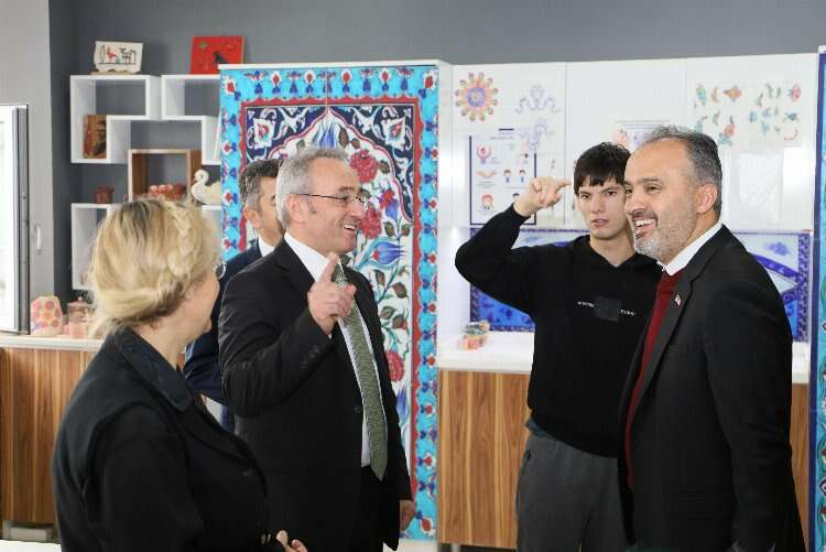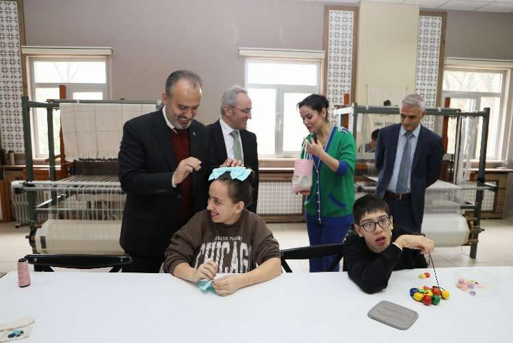 Yoğun temposuna rağmen, fırsat buldukça eğitim kurumlarını ziyaret edip, gençlerle tecrübelerini paylaşan Bursa Büyükşehir Belediye Başkanı Alinur Aktaş, 3 Aralık Dünya Engelliler Günü etkinlikleri çerçevesinde bu kez Mehmet Torun Aziz Torun Özel Eğitim Uygulama Okulu’nda eğitim gören özel öğrencilerle buluştu. İl Milli Eğitim Müdürü Dr. Ahmet Alireisoğlu ve Osmangazi İlçe Milli Eğitim Müdürü Metin Sezer ve Okul Müdürü Mesut Güzel ile birlikte dokuma, el sanatları ve seramik atölyelerinde çalışan özel öğrencileri ziyaret eden Başkan Aktaş, öğrencilerle sohbet edip, onlara başarılar diledi.,