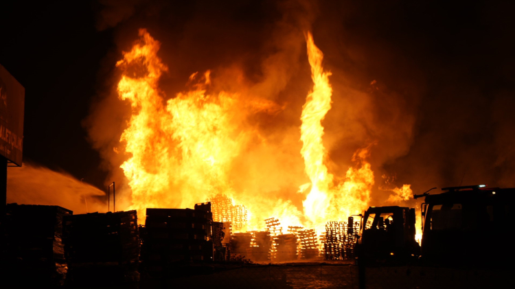 Edinilen bilgiye göre, palet fabrikasında çıkan yangın kısa sürede büyüdü.