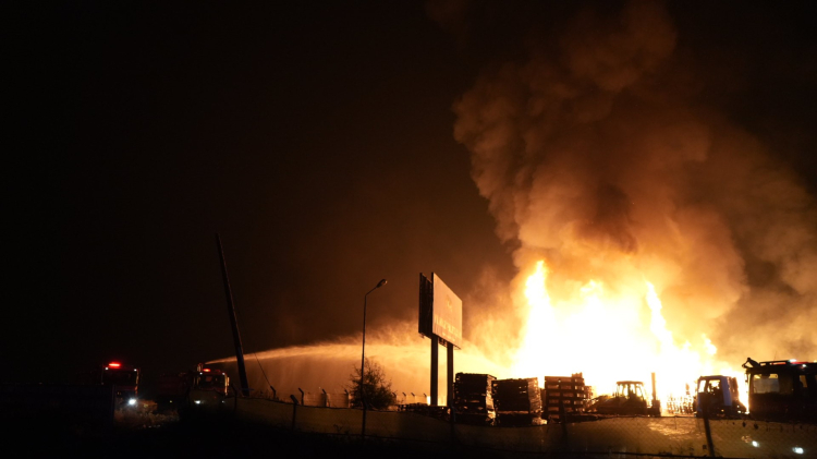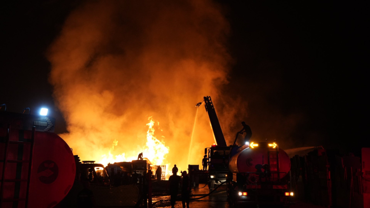 Alevlerin geceyi aydınlattığı yangına çok sayıda itfaiye ekipleri sevk edildi.