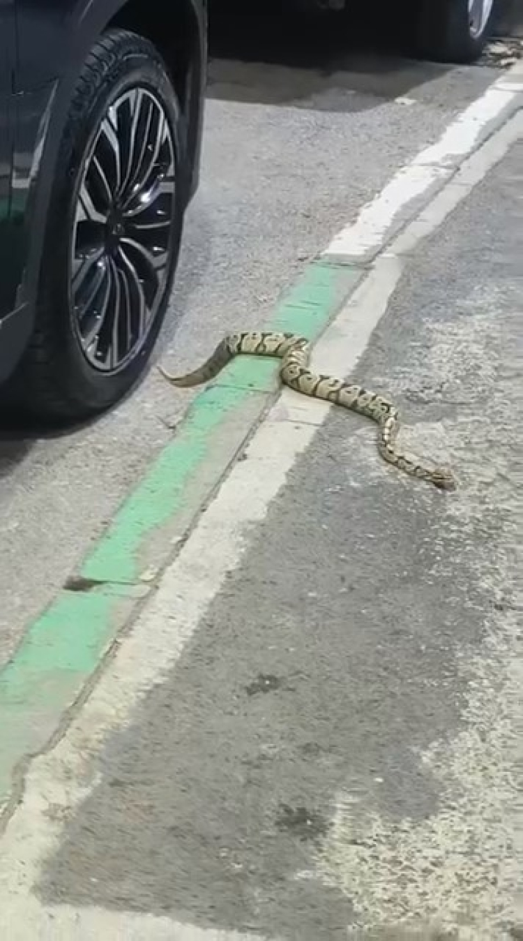 Kısa süre içinde olay yerine gelen vatandaşlar, aracın jantından sarkan sarı ve siyah desenli yaklaşık 1 metre uzunluğundaki bir yılanla karşılaştı. Bazı mahalle sakinleri durumu cep telefonlarıyla kayda alırken, bazıları ise tedirgin oldu. Vatandaşlar yılanı nasıl alacağını düşünürken, kendiliğinden janttan çıkan yılan araçtan uzaklaştı.