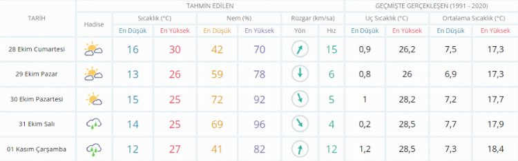 5 GÜNLÜK HAVA DURUMU TAHMİNİ