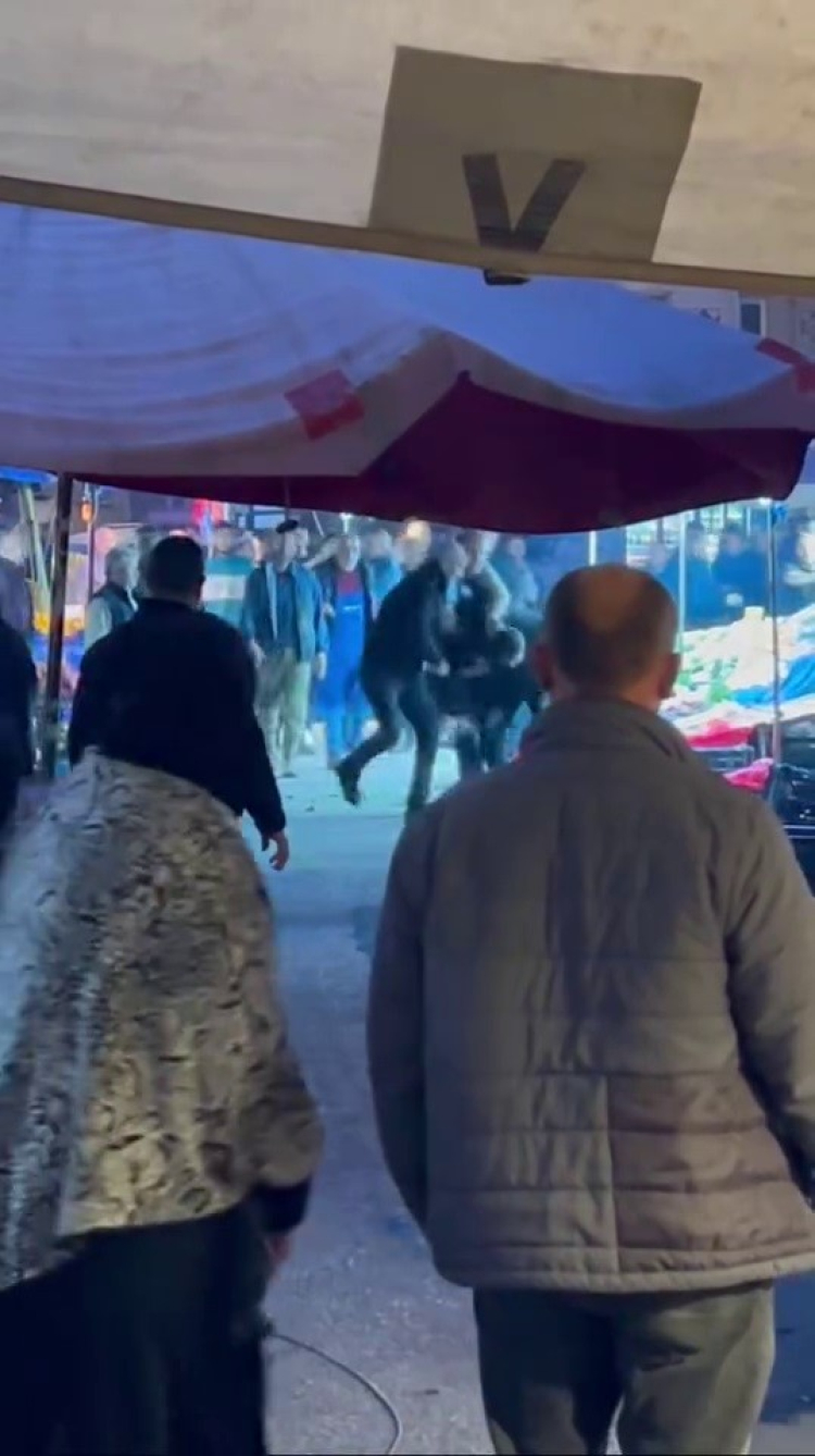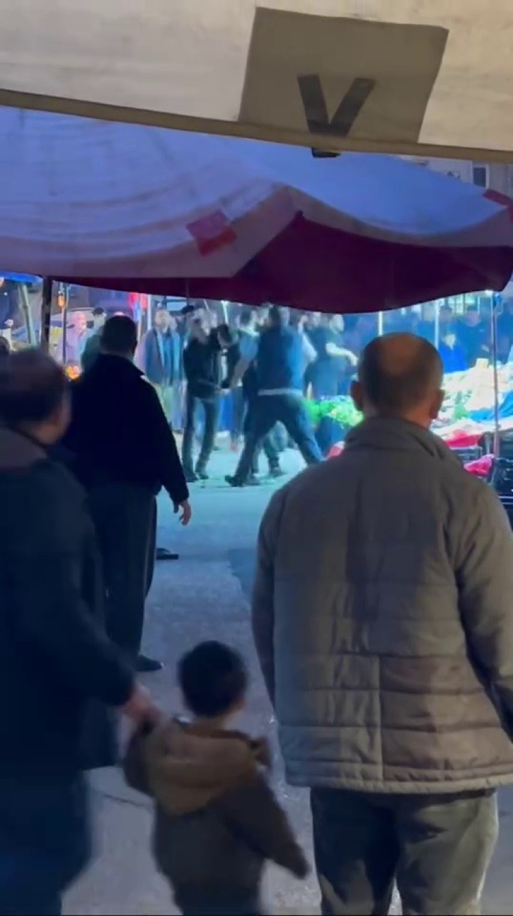 Sözlü tartışma kısa sürede kavgaya döndü. Pazar alanını boks ringine çeviren pazarcıların kavgası, saniye saniye amatör kamera ile kaydedildi.