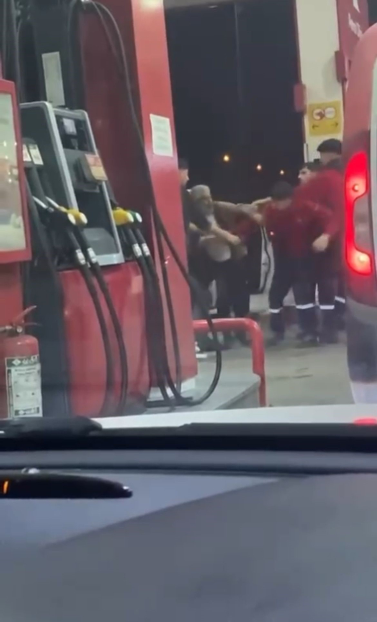Sözlü tartışma kısa sürede kavgaya döndü. Kavgayı gören vatandaşlar duruma el atarken, ihbar üzerine olay yerine gelen polis ekipleri kavgayı ayırdı. Benzin istasyonunun ringe döndüğü anlar saniye saniye amatör kameraya yansıdı.