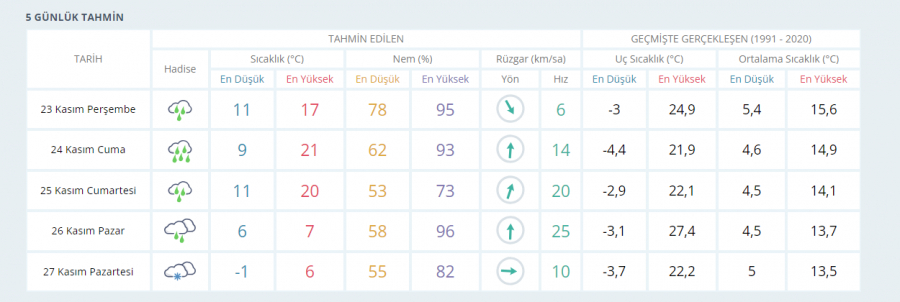 5 GÜNLÜK HAVA DURUMU TAHMİNİ