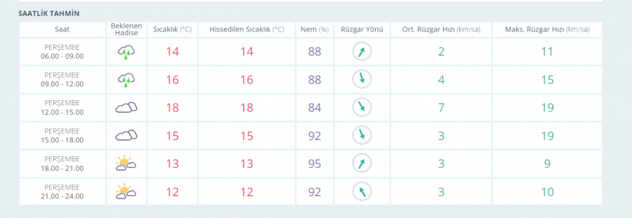 Çok bulutlu, sağanak ve yer yer gök gürültülü sağanak yağışlı geçeceği tahmin ediliyor. Yağışların; Yerel kuvvetli olması bekleniyor.
