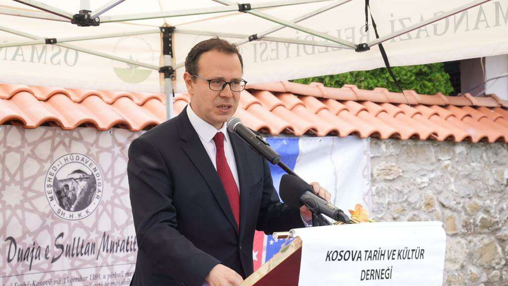 Türkiye’nin Priştine Büyükelçisi Sabri Tunç Angılı da törende yaptığı konuşmada, Kosova zaferinin tarihin akışını değiştiren bir savaş ve İstanbul'un fethinin habercisi olduğunu belirterek, “Türkiye, Balkanlarla etle tırnak gibi birbirinden ayrılmaz bir bütündür. Hem kültürel olarak öyledir hem insan mayası olarak öyledir hem de bugün Osmangazi Belediyemiz gibi pek çok kuruluşumuzun hizmetleriyle bu tip anma etkinlikleri ve ortak tarihi mirasımızı yaşatan etkinliklerle bir bütündür. O yüzden Cumhurbaşkanımız Sayın Recep Tayyip Erdoğan bu coğrafyaya gönül coğrafyamız diyor. Çünkü, bizim aramızdaki bağların gönül bağı olduğunu ben buradaki 4 aylık görev sürem sırasında gayet iyi anladım." ifadelerini kullandı.