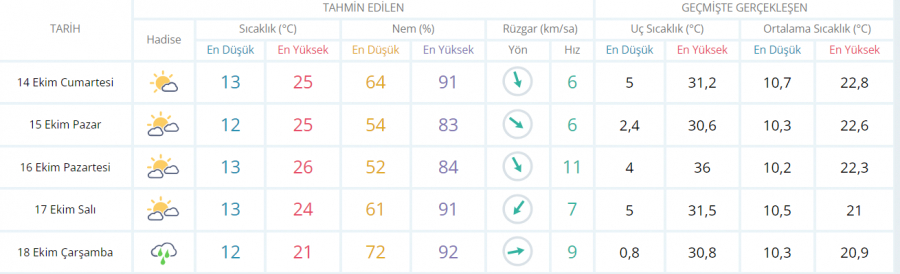 5 GÜNLÜK HAVA DURUMU TAHMİNİ