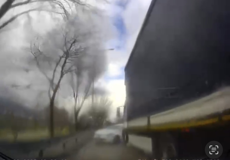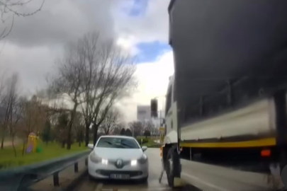 Bursa'da seyir halindeki otomobil şerit değiştirince tırın çarpmasıyla bariyerlere savruldu, kaza anı kameraya yansıdı.
