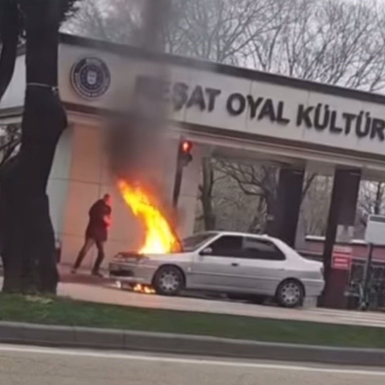 Bursa’nın Osmangazi ilçesi Çekirge Caddesi üzerinde otomobiliyle seyir halinde bir sürücü aracın motorundan gelen duman nedeniyle sağ şeride yanaştı. Sürücünün kaputu açmasıyla motor bir anda alev aldı.
