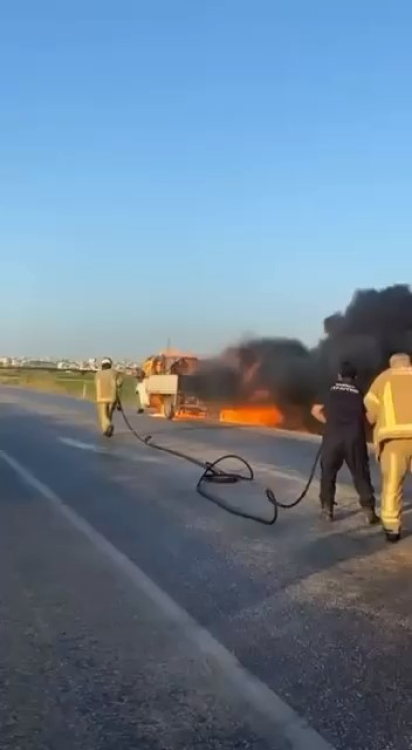 Emniyet şeridine çekilen kamyonet, bir süre sonra alevlere teslim oldu.