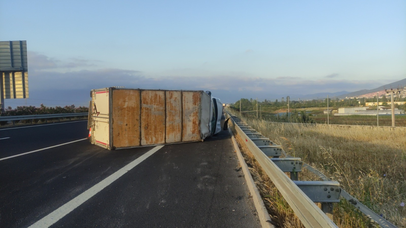 Gebze-Orhangazi-İzmir Otoyolu Orhangazi kavşağı yakınlarında mobilya malzemeleri yüklü bir kamyonet seyir halindeyken lastiğinin patlaması sonucu kontrolden çıkarak devrildi.