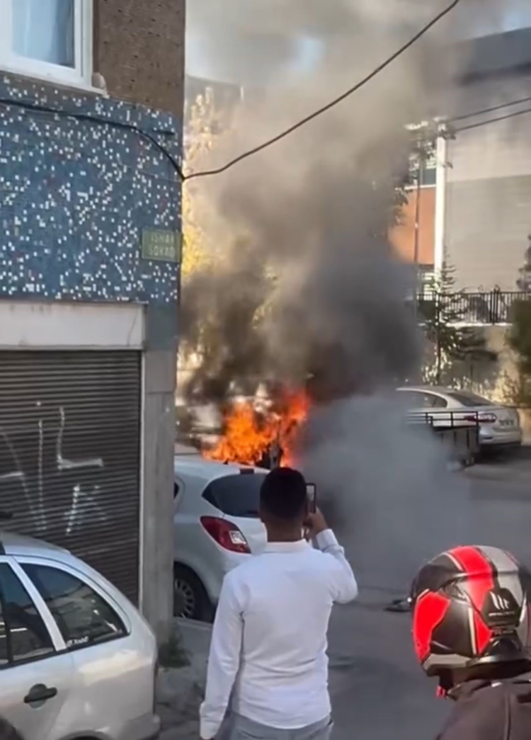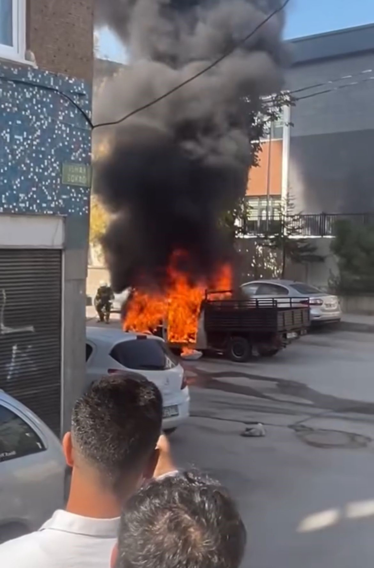 Kamyonet, kısa sürede alev topuna dönerken sürücü canını kurtararak durumu itfaiye ekiplerine bildirdi.