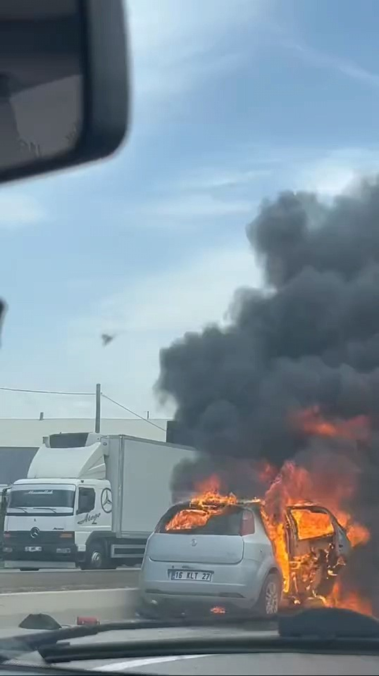 Yangın, saat 14.00 sıralarında Bursa-Ankara karayolu üzeri İnegöl girişinde meydana geldi. İnegöl yönüne seyreden Ömer K. (40) yönetimindeki 16 KLT 27 plakalı otomobilin motor kısmından dumanlar yükseldi. Durumu fark eden sürücü aracını yol kenarına park edip itfaiyeye haber verdi.