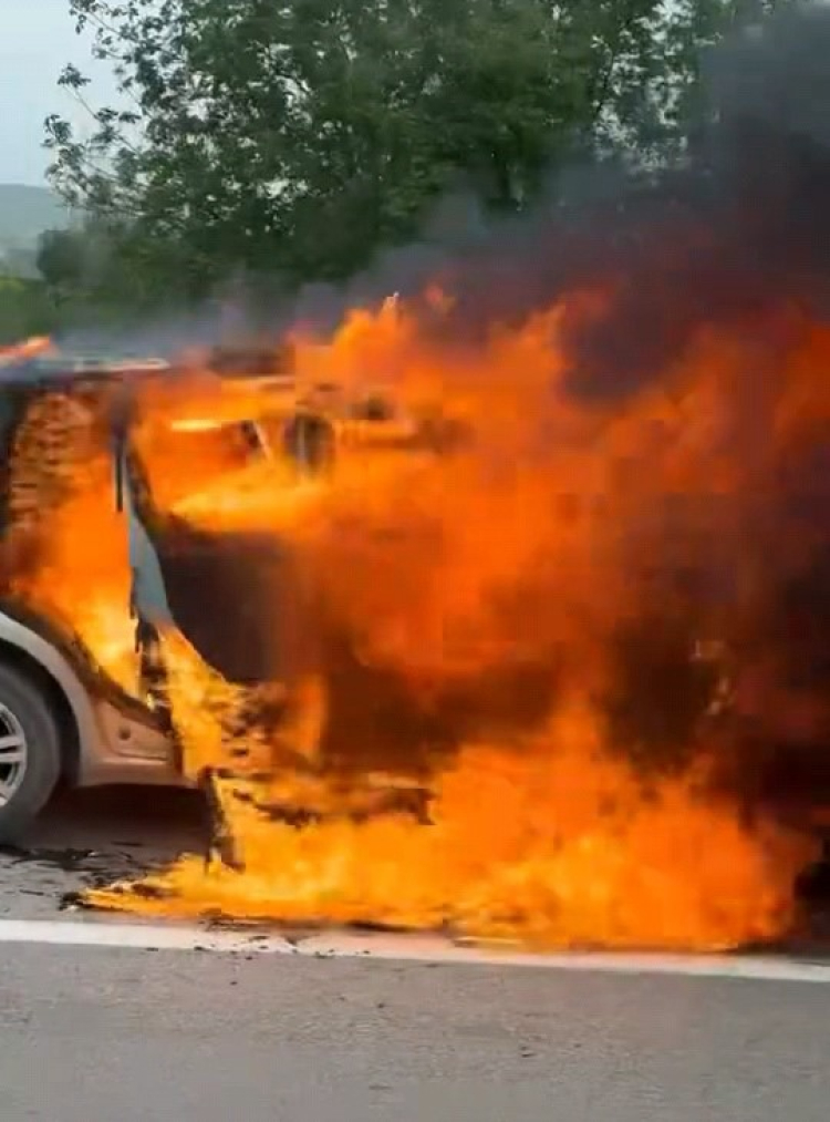 Bu esnada alevler tüm aracı sardı. Olay yerine gelen itfaiye ekipleri alevlere müdahale ederek kısa sürede söndürdü. Çıkan yangın sonucu araç kullanılamaz hale geldi.