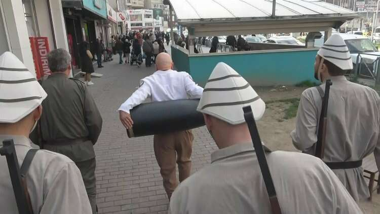 Metroda düzenlenen gösteri sonrası oyuncular, Şehreküstü Meydanı’nda vatandaşlar ile fotoğraf çekindi. Seyit Onbaşı’nı gören vatandaşlar fotoğraf çekinmek için sıraya girerken, çocukların ilgi odağı ise Seyit Onbaşı’nın sırtında taşıdığı top mermisi oldu. Gösterinin sonunda ise, Seyit Onbaşı sırtında taşıdığı mermiyi topa koyarak bitirdi.