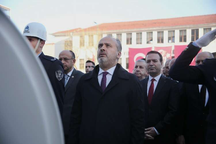 Vali Mahmut Demirtaş, Bursa Büyükşehir Belediyesi Başkanı Alinur Aktaş, Atatürk heykeline çelenk sundu.