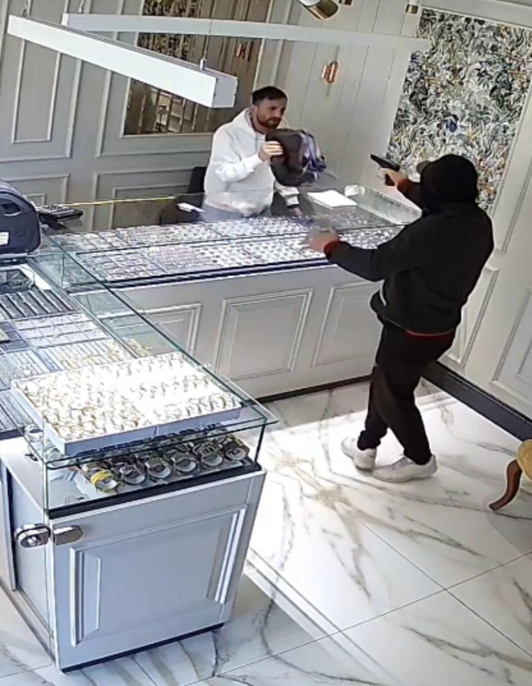 Tetiği çeken soyguncu kuyumcudan çantaya altınları doldurmasını istedi. Kuyumcunun kardeşinin içeri girip "sakin sakin" diye bağırmasıyla panikleyen şüpheli, kuyumcuya ateş açıp kayıplara karıştı. İlk başta olayı şaka zanneden kuyumcu daha sonra panik butonuna bastı.