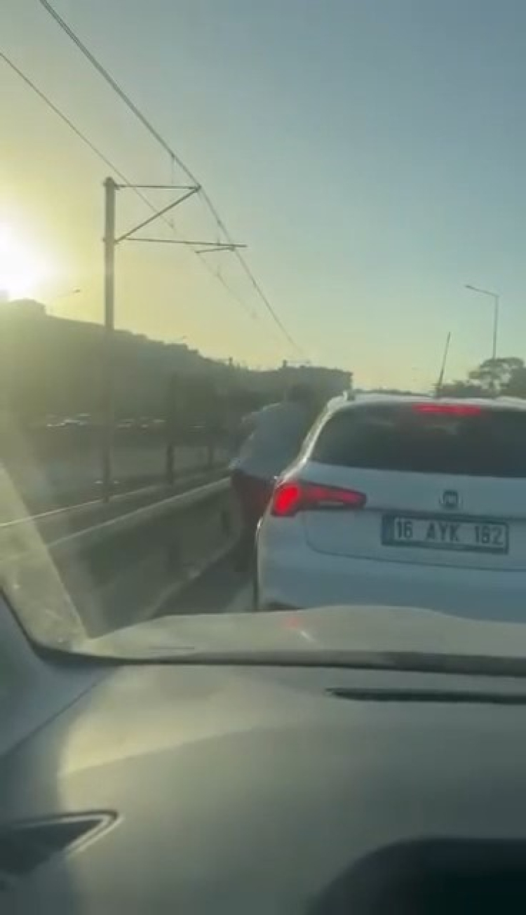 Bursa'da sürücüler arasında yumruklu 'yol verme' kavgası başka bir sürücü tarafından kaydedildi.