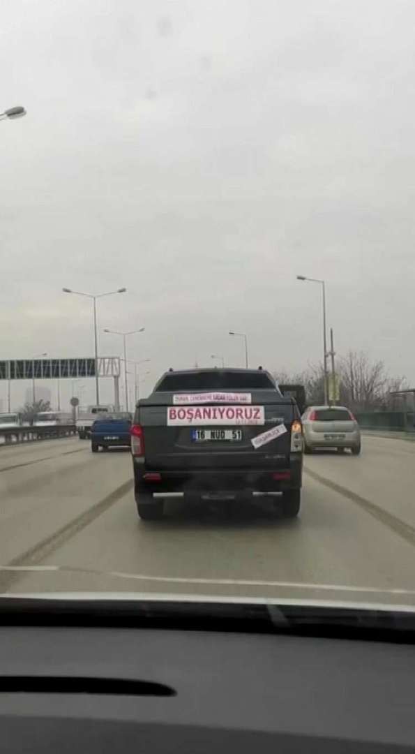 Tarihe geçen boşanma davası: ‘Boşanıyoruz’, '10. sezon büyük final', 'mutlu son :)' yazarak Bursa’yı turladı