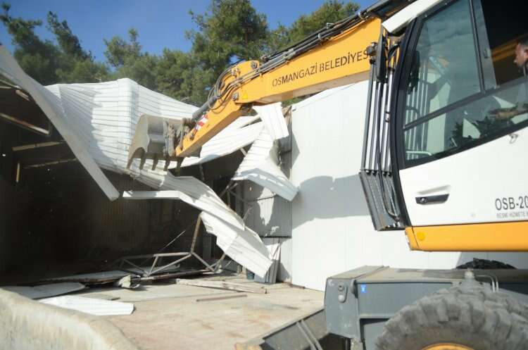 Osmangazi Belediyesi, Ovaakça Santral Mahallesi’nde tarım arazisi üzerine inşa edilen kaçak fabrikaları yıktı.