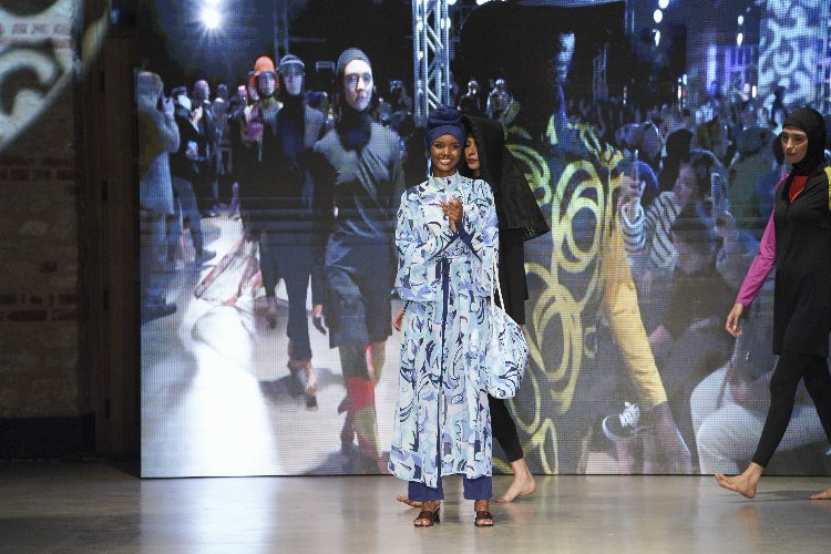 Tesettür mayo defilesinde Halima Aden rüzgarı esti