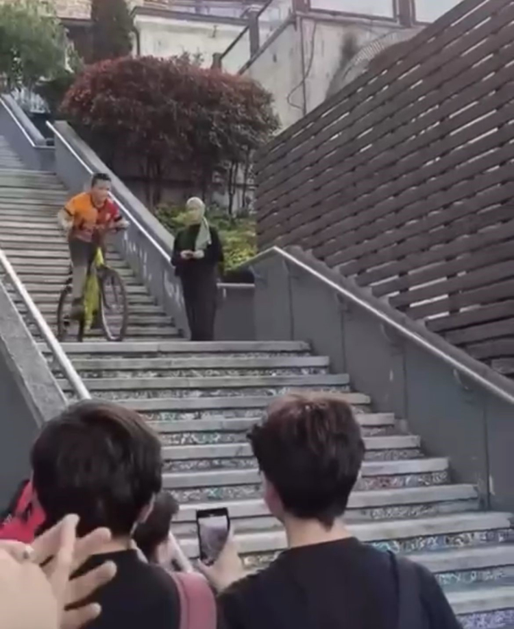 Merdivenlerden bisikletiyle sorunsuz şekilde inen çocuk, izleyenlere hem heyecan dolu anlar yaşattı hem de büyük takdir topladı.