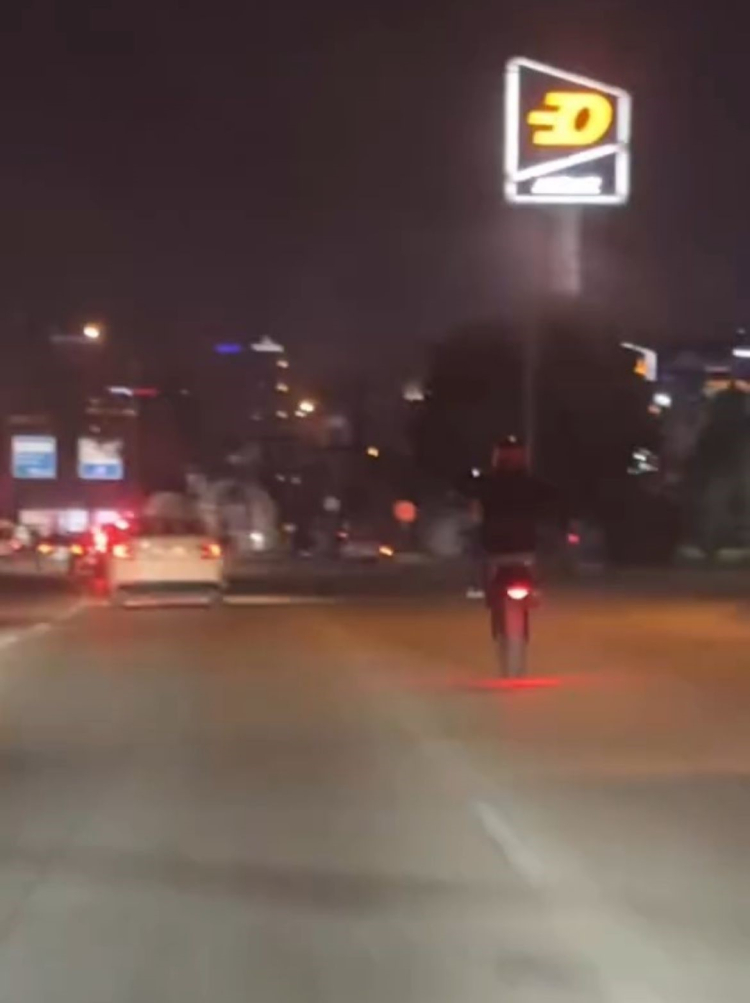 Bursa’nın Nilüfer ilçesi Beşevler mevkii İzmir-Ankara yolu üzerinde ilerleyen bir motosiklet sürücü tek teker yaprak metrelerce ilerledi. Kazaya davetiye çıkaran sürücü kameraya yansırken, sürücünün duyarsız hareketleri diğer sürücülerinde dikkatini çekti.