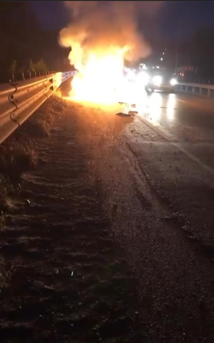 Araçtan dumanlar çıktığını gören sürücü otomobili hemen emniyet şeridine çekip uzaklaştı. Çevredekiler 112 Ekiplerine ulaşırken, alevler içindeki araç bomba gibi patladı. O anlar kameraya yansırken, itfaiye ekipleri bölgeye gelerek yangına hızla müdahale etti. Şans eseri meydana gelen olayda yaralanma olmazken, araç kullanılamaz hale geldi. Olayla ilgili tahkikat başlatıldı.