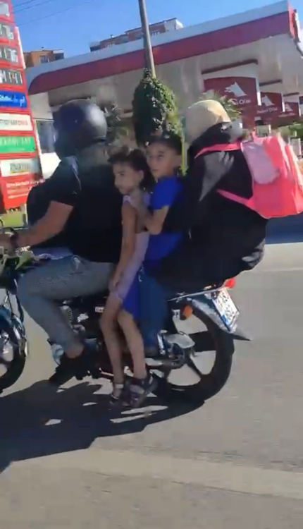 Öte yandan, Sanayi Caddesi üzerinde ise motosiklete 4 kişi binen aile, ölüme davetiye çıkardı.