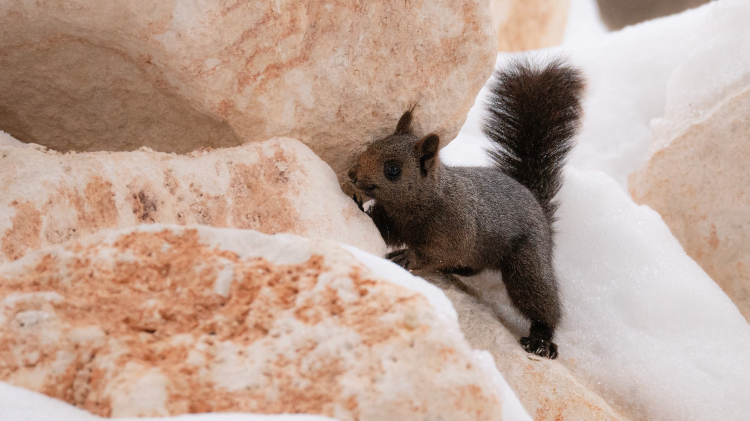 Bursalı doğa fotoğrafçısı Ömer Ahu tarafından Tunceli'nin Pülümür ilçesinde görüntülenen melanistik sincap, diğer sincaplarla kıyaslandığında koyu ve siyah kürküyle göze çarptı.