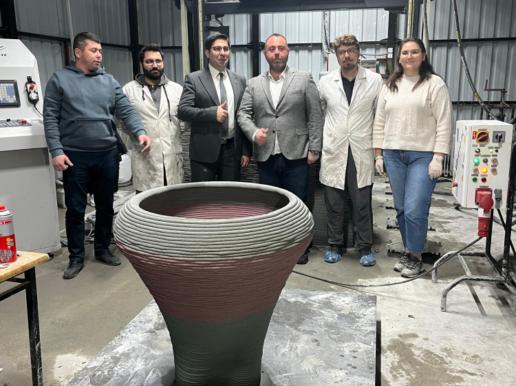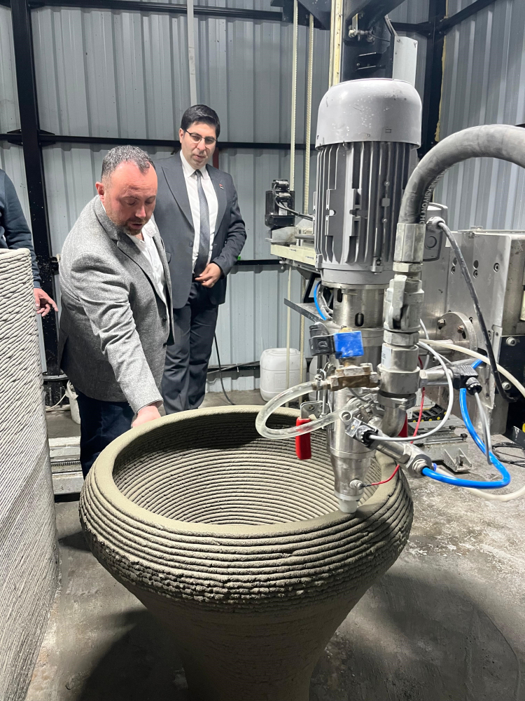 3D yazıcılı beton teknolojisinin 2000’li yıllarda ortaya çıktığını hatırlatan Prof. Dr. Ali Mardani, teknolojinin her geçen gün çok hızlı bir şekilde geliştiğini vurguladı. “Örneğin günümüzde Çin’de 5 katlı binalar yapılabilmektedir. Avrupa ve Amerika’da köprüler ve çeşitli barınaklarla altyapı ihtiyaçları giderilebiliyor. Türkiye’de ise deprem sonrası birkaç kentte pilot uygulamalar başarılı bir şekilde başladı. Belediyeler tarafından yaygın bir şekilde beton kent mobilyaları yapılmaktadır. Bizim de belediyelerle ortak çalışmalarımız devam ediyor. İstediğimiz nesneleri yazdırabiliyoruz” dedi.