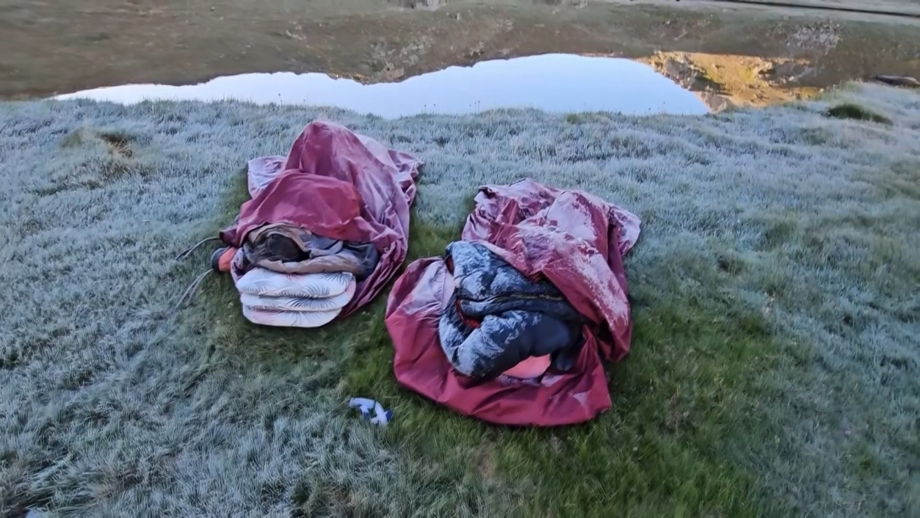Gece tulumlarda uyuyan dağcılar, sabah kalktıklarında üzerlerine yağan kırağıyı görünce gözlerine inanamadı. Kısa kollu yola çıkan dağcılar, zirveye çıktıklarında ise kar montlarını giymek zorunda kaldı.