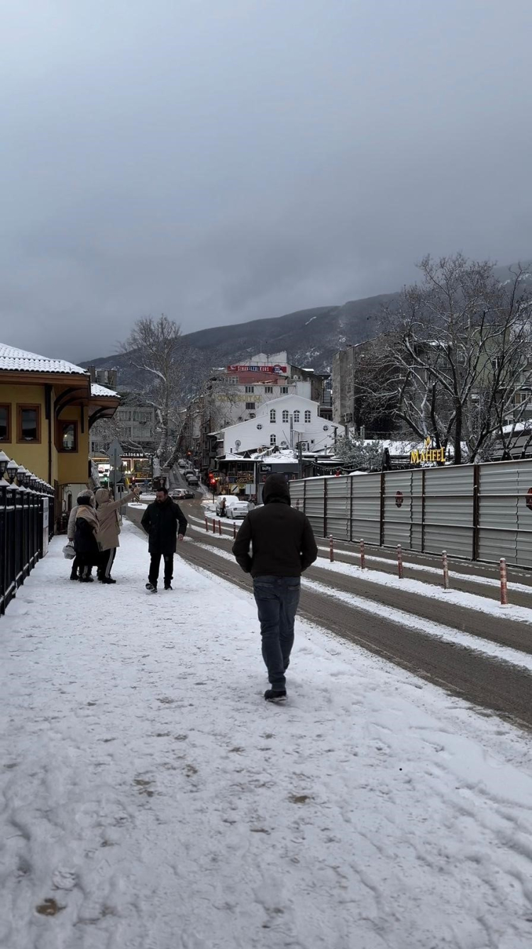 Bursa'da yeni yılın ilk gününde etkili olan kar yağışı, şehir merkezini ve Mudanya'yı beyaz örtüyle kapladı.