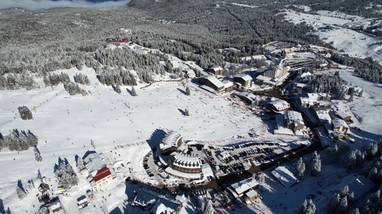 Drone görüntülerinde, Uludağ'daki yoğunluk net bir şekilde gözler önüne serilirken, kar manzarası ve pistlerdeki hareketlilik kış turizminin canlılığını bir kez daha ortaya koydu. Kar kalınlığının artmasıyla birlikte kayak sezonunun en yoğun günlerinden birini yaşayan Uludağ, beyaz örtüsüyle adeta görsel bir şölen sundu.