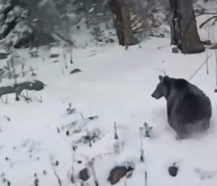 Kış turizminin önemli merkezlerinden Uludağ'da kış uykusuna yatamayan ayı, cep telefonu kamarasına yansıdı.