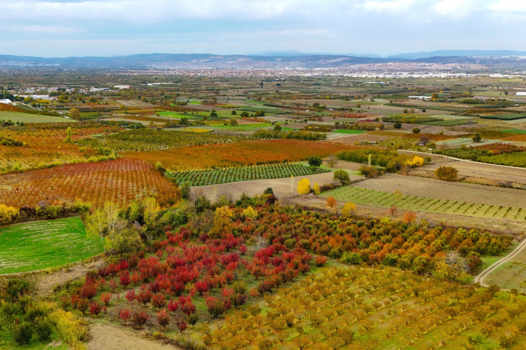 Altın sarısı, kızıl ve turuncu tonlara bürünen meyve bahçeleri, görenleri kendine hayran bıraktı.