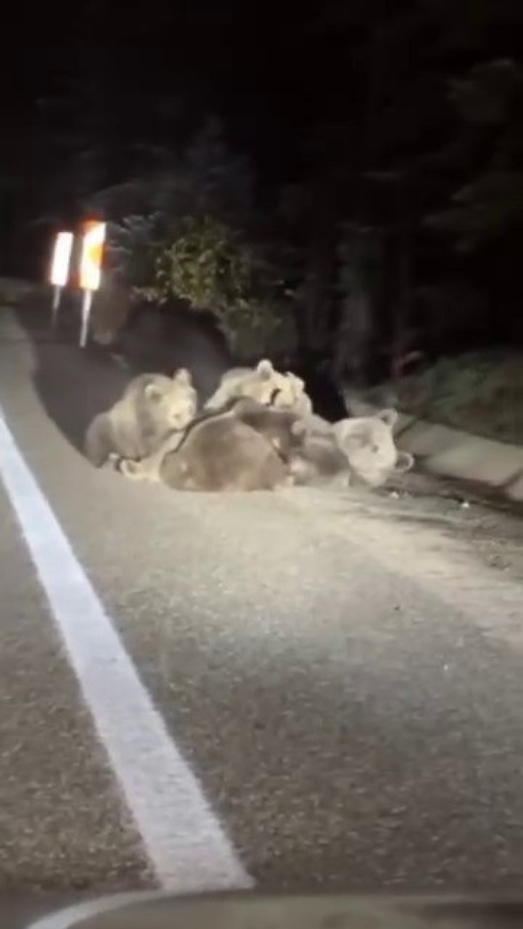 Görüntülerde, yolun kenarına yatarak 3 yavrusunu sakin bir şekilde emziren anne ayının son derece koruyucu tavırlar sergilediği dikkat çekti. Yavru ayıların da anneye sokularak beslenmeye devam ettiği görülüyor. Bu anlara tanık olan vatandaşlar, anne ayıyı rahatsız etmemek için araçlarından inmeden sadece uzaktan izlemekle yetindi.