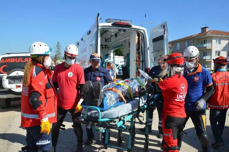 Bursa İl Sağlık Müdürlüğü’ne bağlı Ulusal Medikal Kurtarma Ekipleri (UMKE) çeşitli afet durumlarının canlandırıldığı geniş çaplı tatbikat gerçekleştirdi.