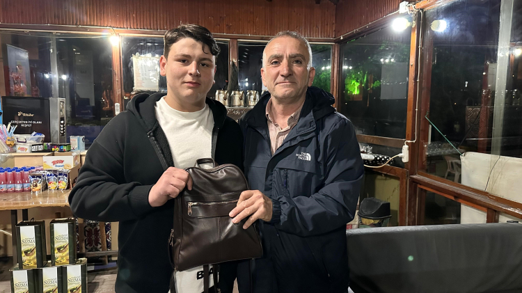 Anne ve oğul, içerisinde yüklü miktarda para ve ziynet altın bulunan çantalarını oturdukları çay bahçesinde unuttu. Çantanın yokluğunu fark ettiklerinde aile büyük bir endişe yaşadı. Çay bahçesi işletmecisi ise altın dolu çantayı sahibine teslim etti.