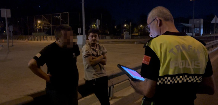 Aracı trafikten men edilen şüpheli, yanındaki arkadaşıyla birlikte gözaltına alındı. O anlar kameraya anbean yansıdı.