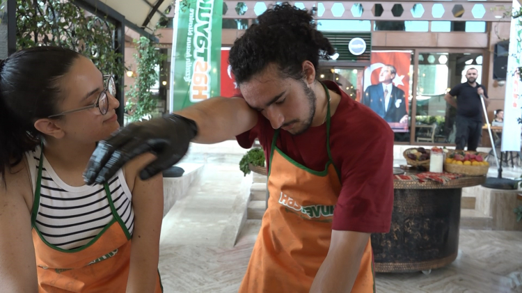Önlüğü giyen öğrenciler, bulgur ile karıştırdıkları salça, soğan, baharat ve yeşilliklerle çiğköftenin serüvenine dahil oldu. Kıvam tutturmak için boncuk boncuk terleyen öğrenciler, süre sonunda ellerini havaya kaldırarak MasterChef yarışmasını aratmayan görüntülere imza attı.