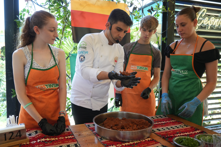 Türkiye'ye gelen gençleri ülkelerine Türk tanıtım gönüllüsü olarak göndermeyi hedeflediklerini söyleyen Hastavuk Kurumsal İletişim ve Halka İlişkiler Müdürü Bircan Özkan, "Gençler Arası Değişim Programı (GAD) sebebiyle çiğköfte etkinliği gerçekleştirdik. Dünyanın birçok ülkesinden gelen genç öğrencilerimiz ile beraberiz. Amacımız Türk tarihini, kültürünü ve yemeklerini tanıtmak. Gençlerin her birini ülkelerine Türk tanıtım elçisi olarak göndermeyi amaçlıyoruz. Ülkemizin doğusuna özgü olan çiğköfteyi ve bu organizasyonu şef Barış Uysal'ın, Bursa Büyükşehir Belediyesi, Hastavuk ve Nev-i Çeşni'nin destekleriyle gerçekleştirdik. Bundan sonra Türk enstrümanları ve Türk ezgileriyle halk oyunları etkinliklerinin yanı sıra akşam mangal partimizi var. Elimizden geldiğince Türk insanını, kültürünü, tarihini ve yemeklerini tanıtmayı hedefliyoruz" diye konuştu.